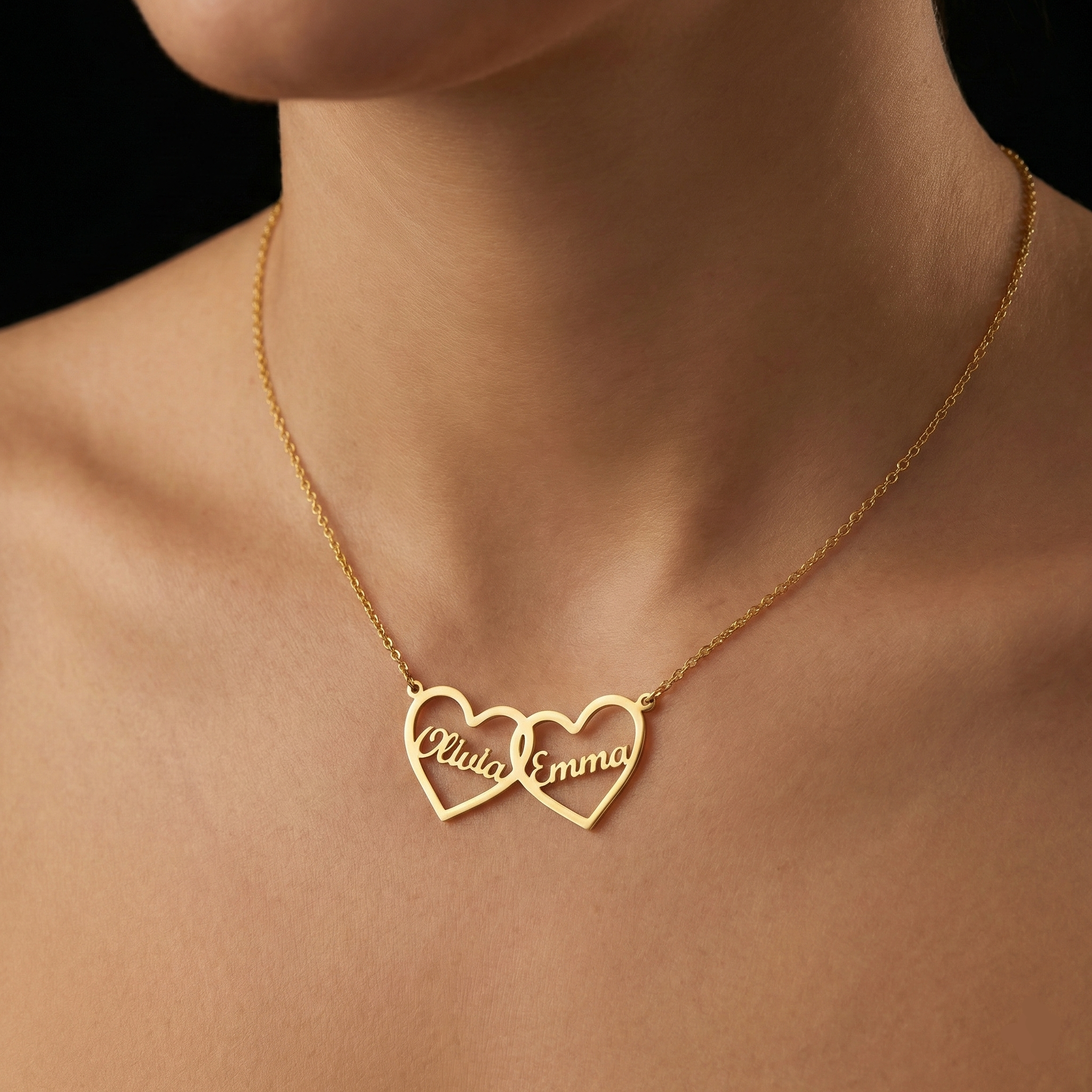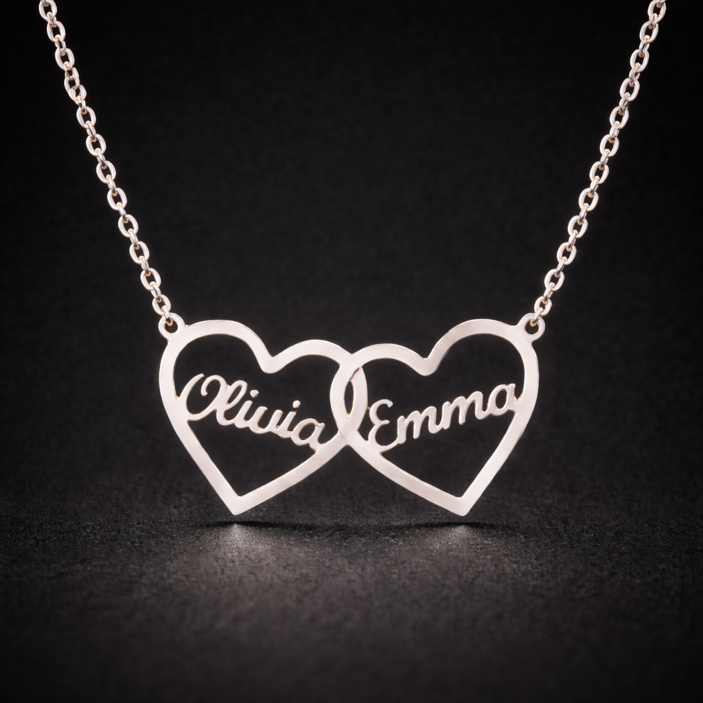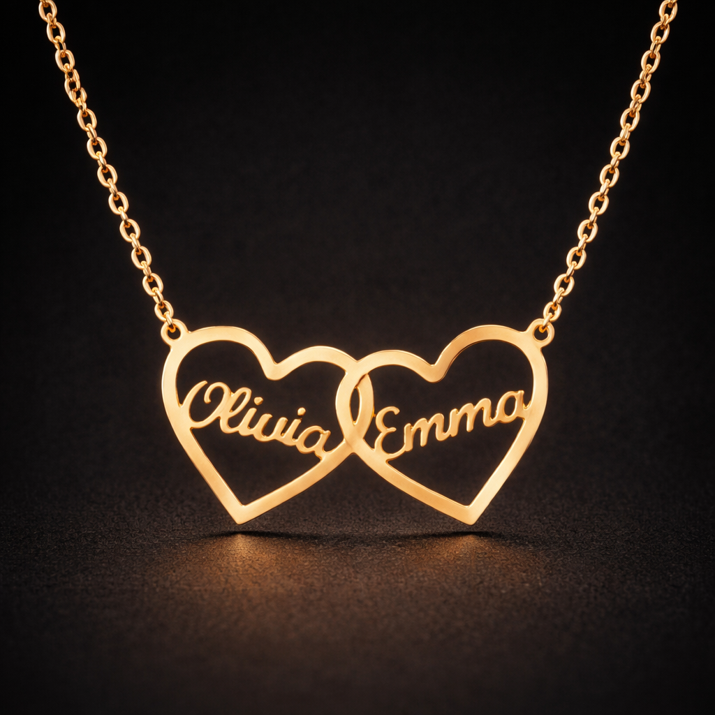 MUDY™ Dubbel Hart Ketting met Twee Namen – Liefde Verbonden
